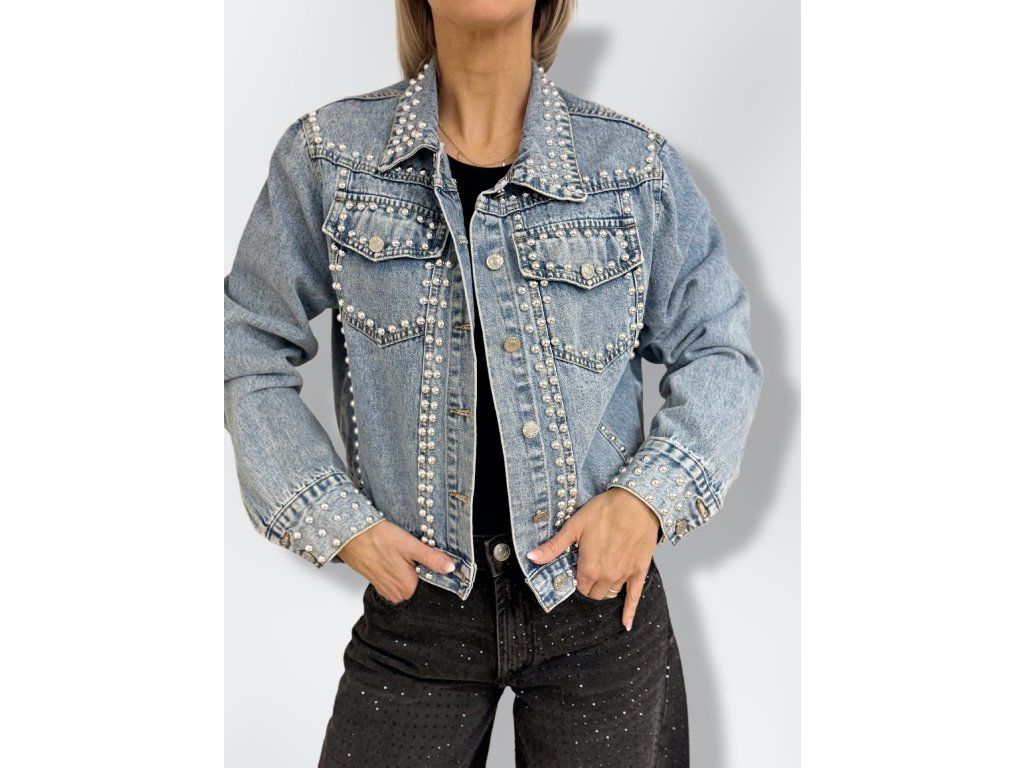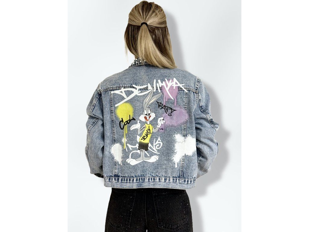 Denim bunda BUNNY s potiskem a cvočkami