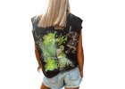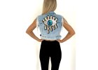 Černá trhaná denim vesta COCKTAIL s potiskem